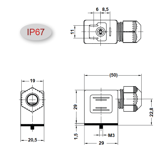 - Norma: DIN 43650 e ISO 4400