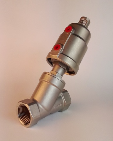 Válvula de asiento inclinado con actuador neumático simple efecto.